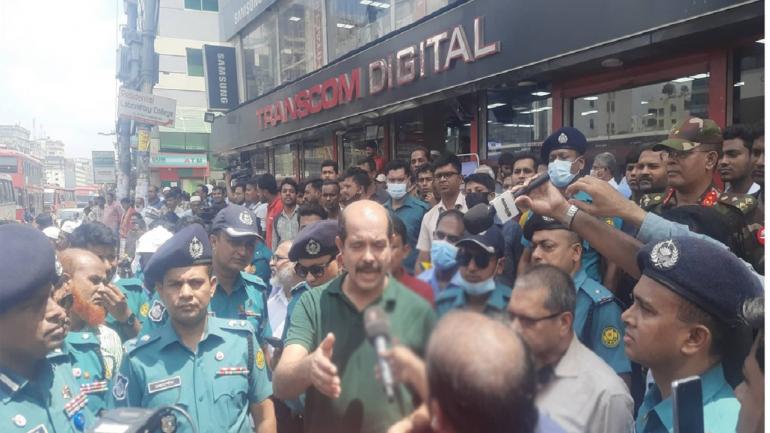 মঙ্গলবার (১৬ আগস্ট) বেলা ১১টার দিকে উত্তরায় ক্রেন থেকে গার্ডার পরে দুর্ঘটনাস্থল পরিদর্শনে এসে কথা বলছেন ডিএনসিসি মেয়র।