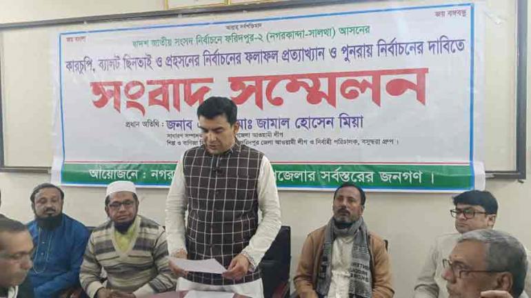 মঙ্গলবার (৯ জানুয়ারি) দুপুর ২টায় ফরিদপুর প্রেসক্লাব মিলনায়তনে এক সংবাদ সম্মেলনে এ দাবী করেন তিনি। সংবাদ সম্মেলনে লিখিত বক্তব্য পাঠ করেন ঈগল প্রতীকের স্বতন্ত্র প্রার্থী জামাল হোসেন মিয়া।
