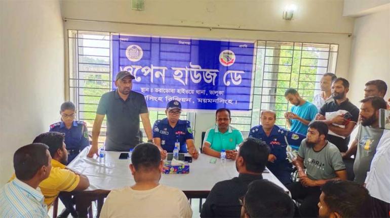 ময়মনসিংহের ভালুকা উপজেলার ভরাডোবা হাইওয়ে থানা কর্তৃক আয়োজিত “ওপেন হাউজ ডে” ও আলোচনা সভা মঙ্গলবার থানার প্রাঙ্গণে অনুষ্ঠিত হয়েছে। স্থানীয় জনসাধারণ, পরিবহন শ্রমিক, কমিউনিটি পুলিশিং নেতৃবৃন্দ ও প্রশাসনের প্রতিনিধিদের অংশগ্রহণে আয়োজিত এই সভায় সামাজিক নিরাপত্তা, আইন-শৃঙ্খলা রক্ষা এবং জনসচেতনতা বৃদ্ধির ওপর গুরুত্বারোপ করা হয়।